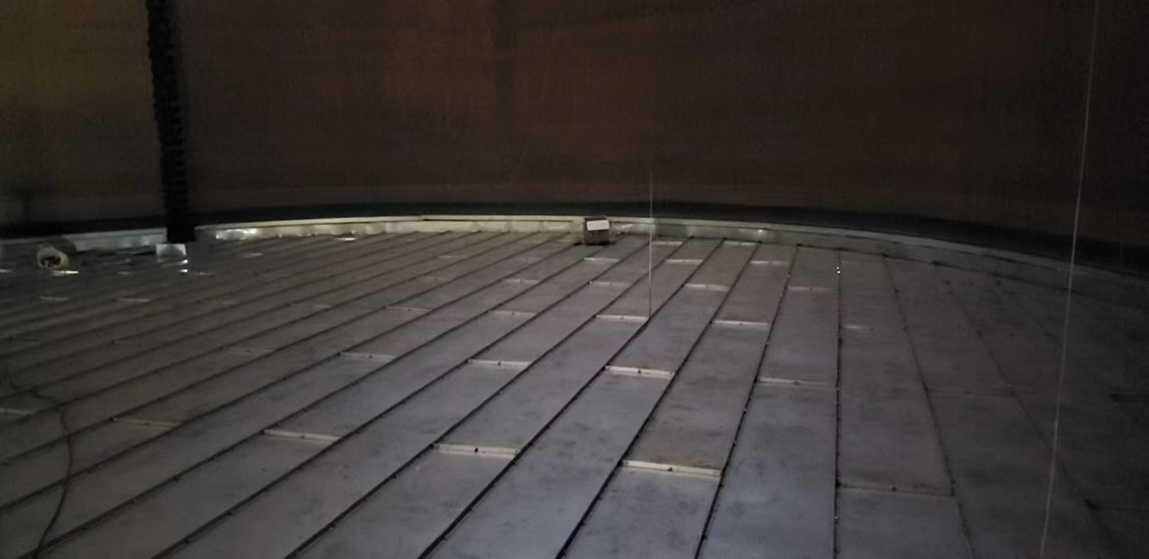 全接液箱式內(nèi)浮盤性能概述:全接液蜂巢內(nèi)浮盤盤底平貼入液面,有效阻隔油氣揮發(fā)99%以上,結(jié)構(gòu)整體性好,強(qiáng)度高,可承載力高。