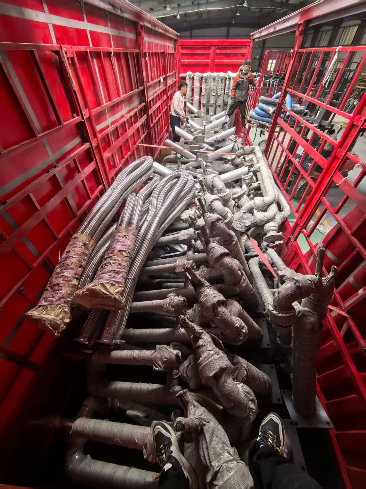 江蘇南京客戶采購的一批火車頂部卸車鶴管和金屬軟管已裝車發往使用現場